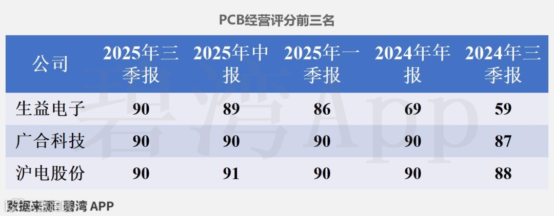 沪电股份在2025年三季报经营评分排名为第61名,在PCB行业中排名为3名。