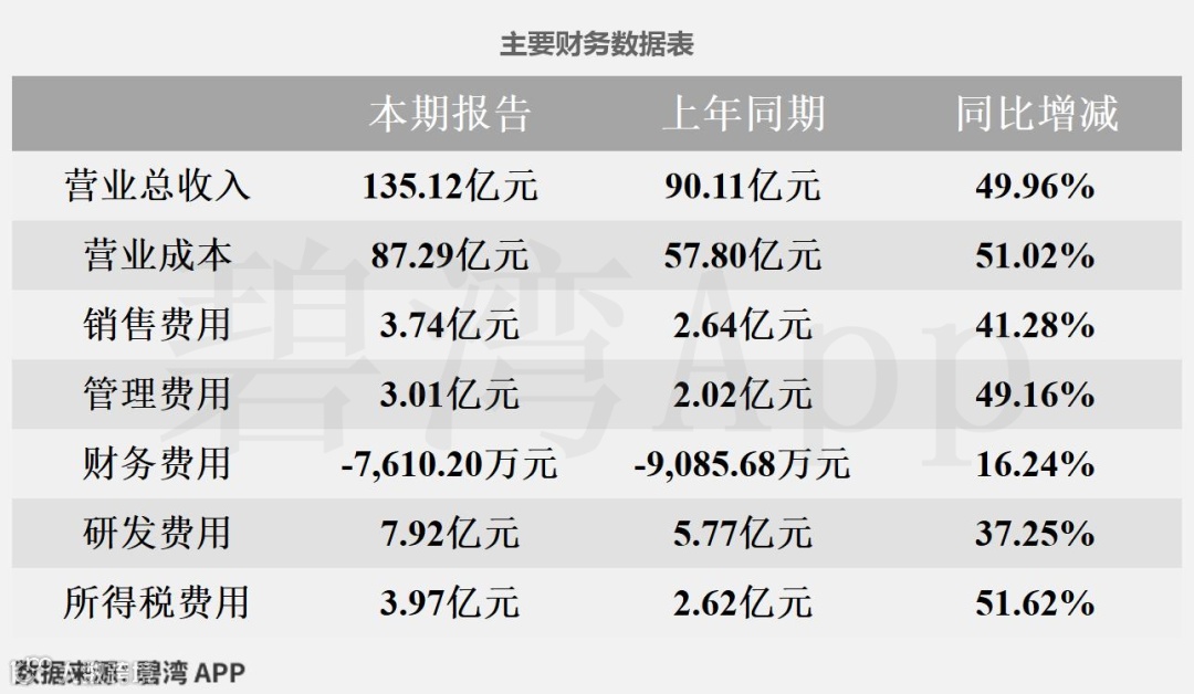主营业务利润同比大幅增长主要是由于营业总收入本期为135.12亿元,同比大幅增长49.96%。