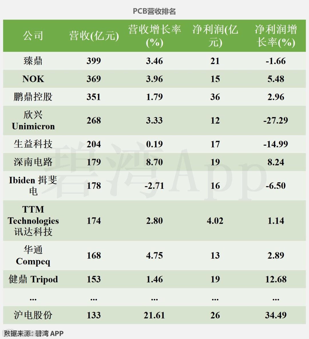 沪士电子股份有限公司于2010年上市。公司的主营业务为PCB,其中产品销售收入(印制电路板业务)为第一大收入来源。