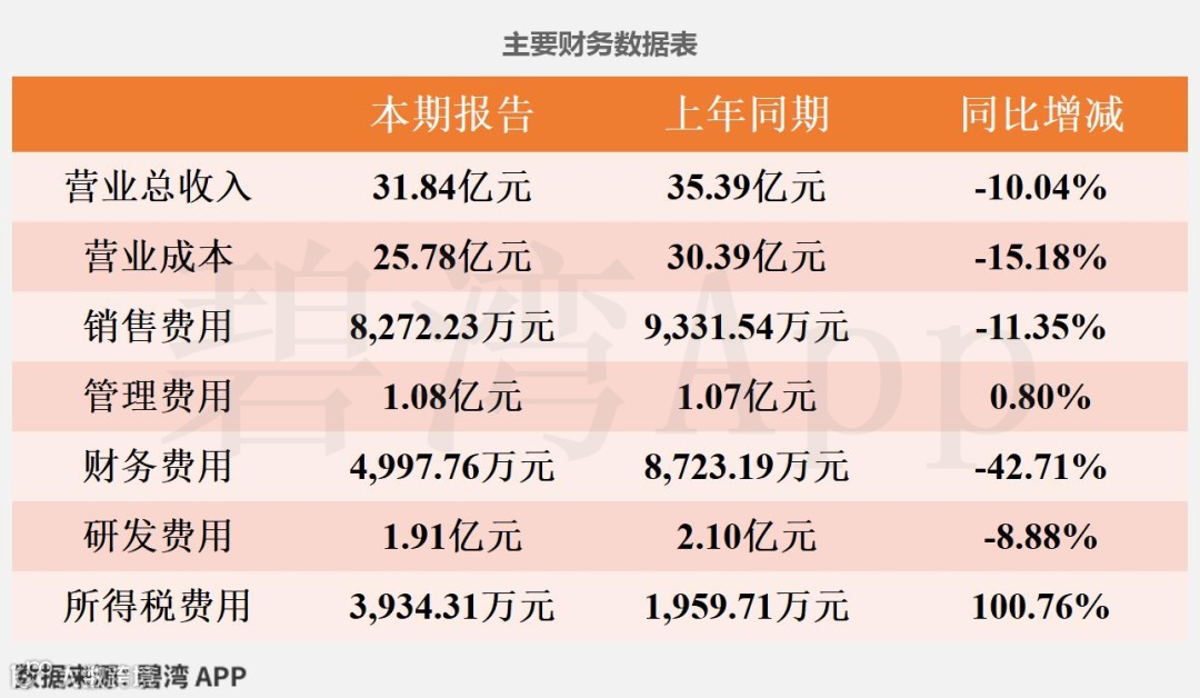 虽然营业总收入本期为31.84亿元,同比小幅下降10.04%,不过毛利率本期为19.02%,同比大幅增长了4.91%,推动主营业务利润扭亏为盈。