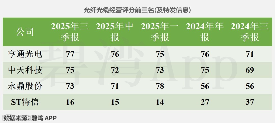 特发信息在2025年三季报经营评分排名为第3779名,在光纤光缆行业中排名为7名。