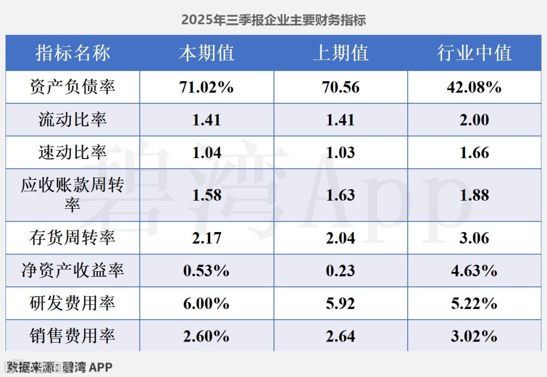 1. 资产负债率为71.02%,较上年同期增长0.46个百分点(上年同期为70.56%);指标值远高于行业中值(行业中值为42.08%),总体债务负担显著高于行业平均水平。