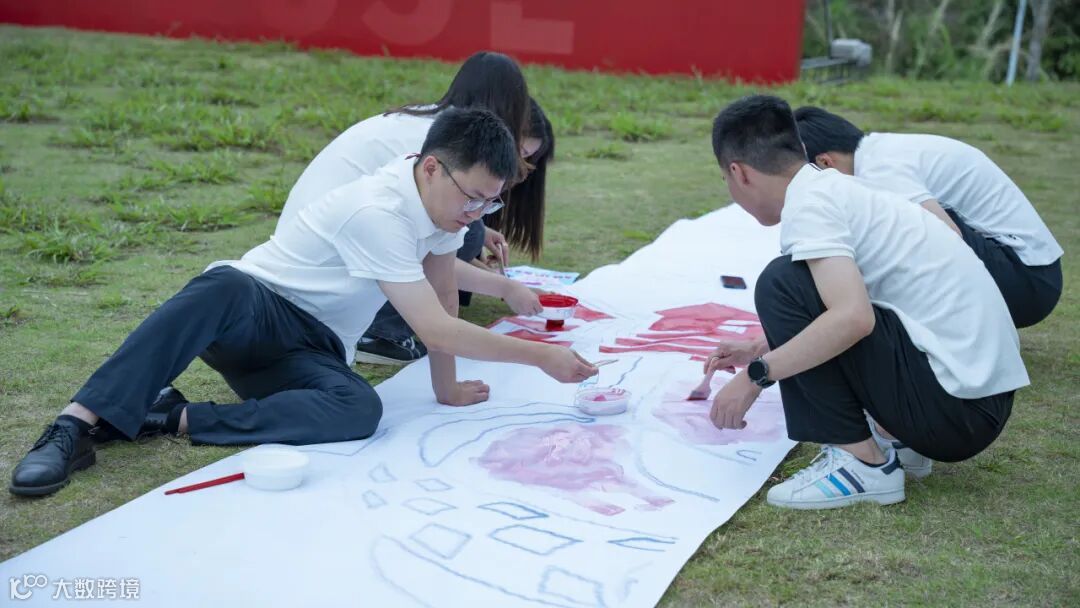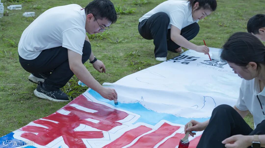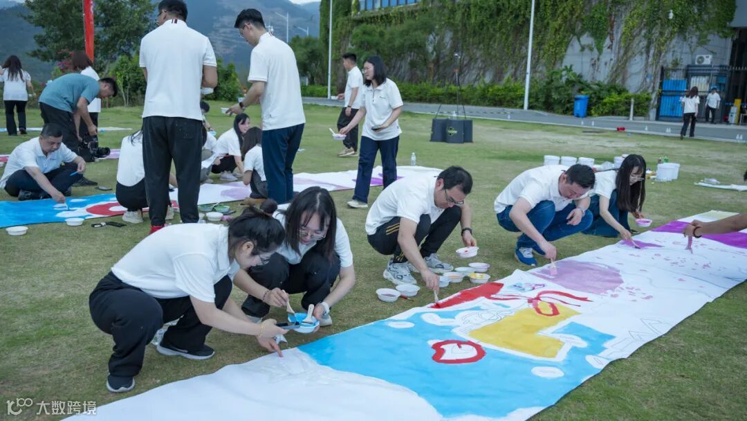 团队成员分组协同,将一块块空白画布拼接成壮观的“金象十周年”巨画。从调色到勾勒,从细节到全局,大家用缤纷色彩演绎创新匠心,以默契配合践行企业精神。