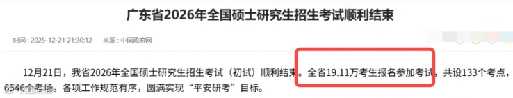 全省19.11万考生报名参加考试,共设133个考点,6546个考场。较25考研(21.26万人)减少2.15W,降幅10.1%。