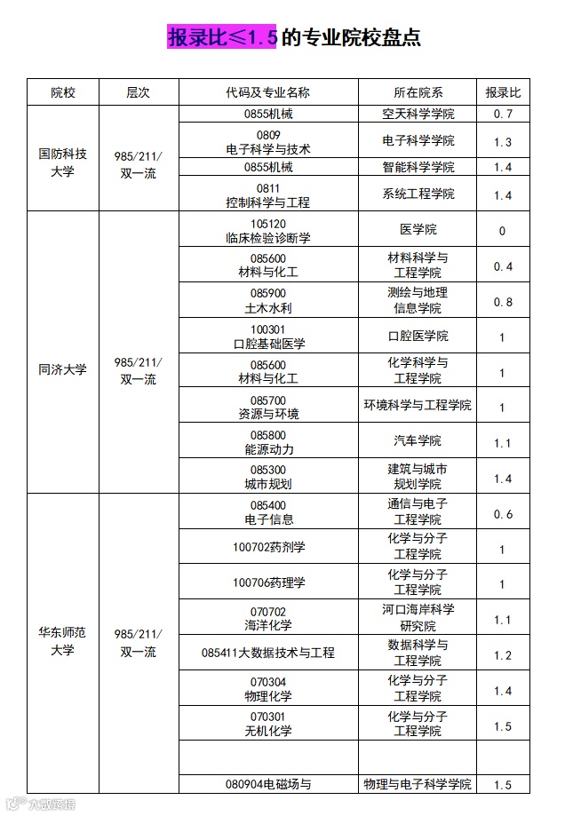 报录比≤1.5的院校专业盘点,供参考。