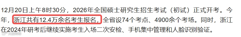 浙江共有12.4万考生报名参加,较去年减少1.46万人。较25考研(13.86万人)减少1.31W,降幅10.5%。