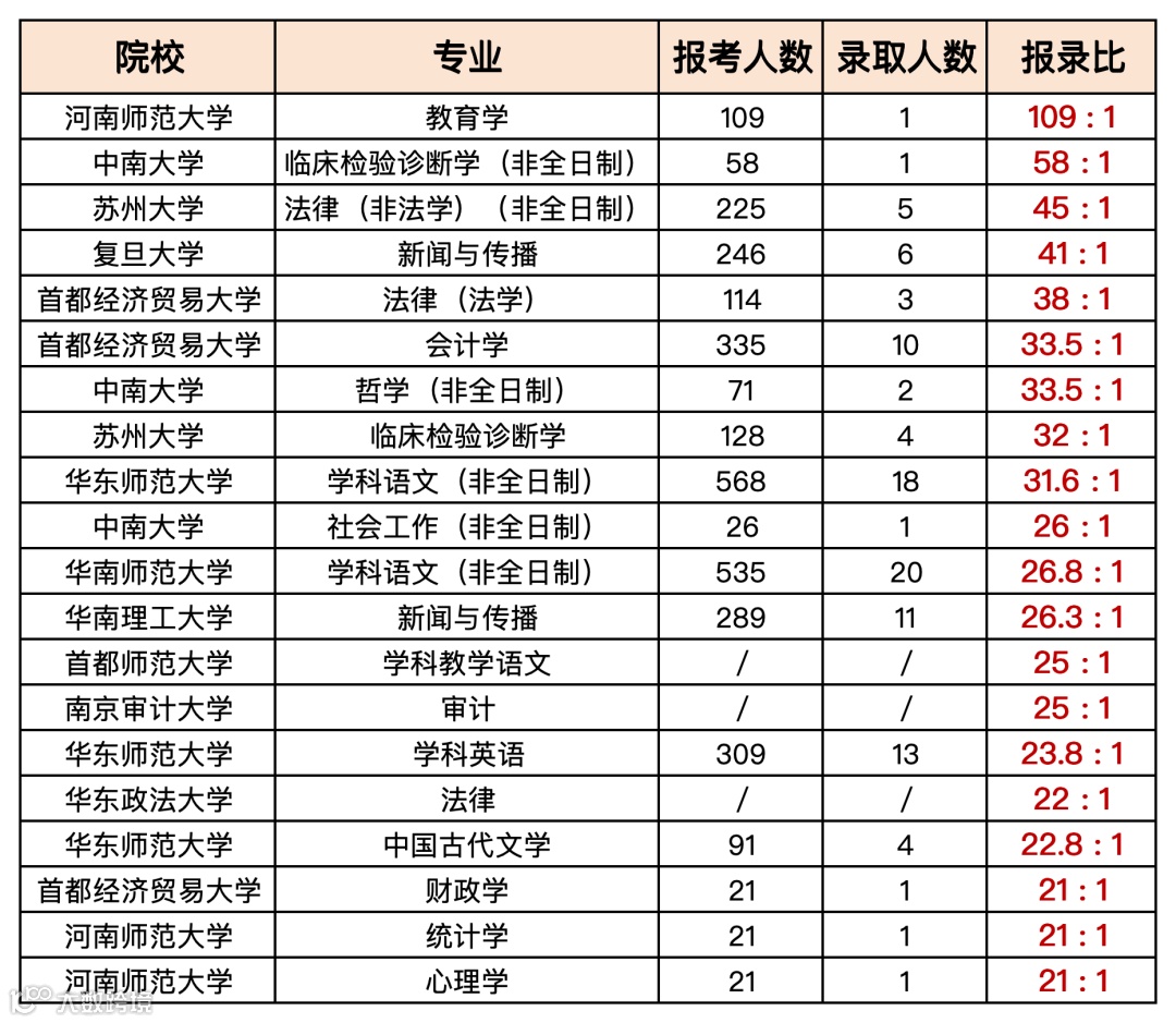 报录比超过20:1的院校专业,供参考。