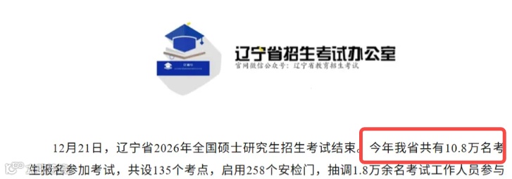今年我省共有10.8万名考生报名参加考试。较25考研(12.5万人)减少1.7W,降幅13.6%。