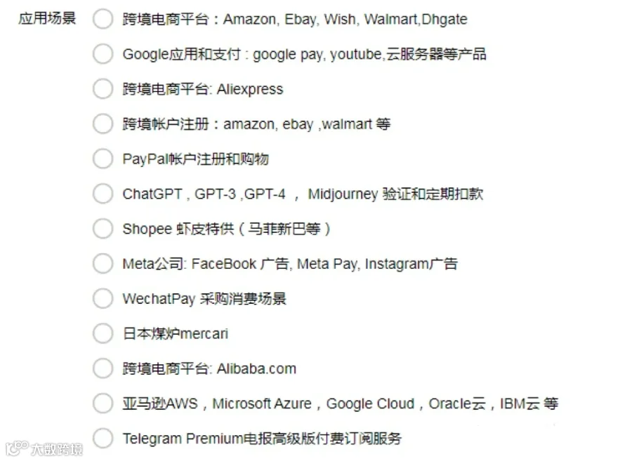 - 国际支付:适用于需绑定国际信用卡的网站注册、WeChat验证等场景。