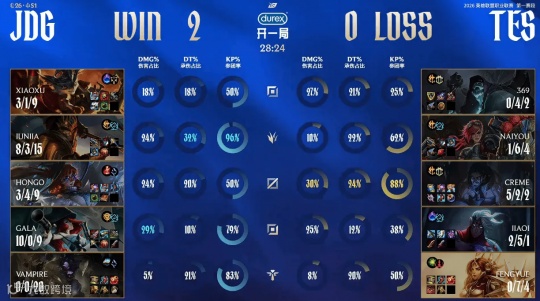 近日,LPL第一赛段小组赛迎来两场揭幕战,其中次轮大战JDG vs TES最引人关注,因为大家都想知道缺少阿水的TES究竟是什么水平。果不其然,在双方下路实力差距较大的情况下,JDG以2-0比分轻松击败TES取得赛季开门红。