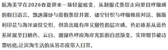 关键词:海洋蓝调 | 飘逸廓形 | 度假元素 | 轻盈质感