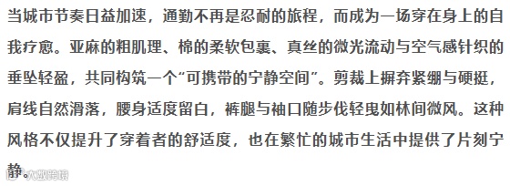 关键词:自然肌理 | 透气垂坠 | 柔和轮廓 | 静谧氛围