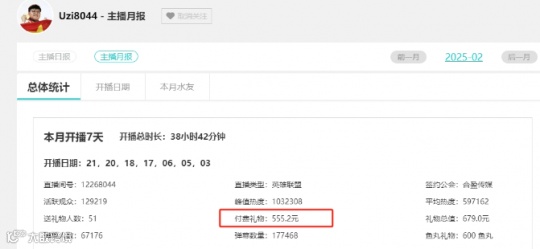 但在另一方面,根据虎牙发布的主播月报来看,Uzi直播间的热度确实也就一般般,送礼物的人数也才51人,付费礼物总共555.2元,超出所有人的意料。