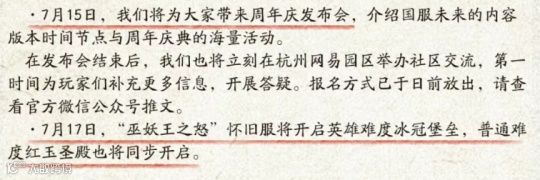 近日,《魔兽世界》官方公布了国服20周年庆的一些前瞻消息,主要包括:线下见面会的全国巡展、回忆活动”影踪派档案馆“、国服专属周年庆发布会定档7月9日、WLK怀旧服的普通难度红玉圣殿会跟英雄难度冰冠堡垒一起开,以及大量付费道具将会迎来惊喜折扣。