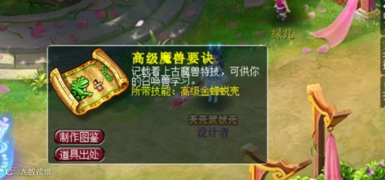 原来小伙伴所获的高级兽诀记载了金蝉技能,属于目前最火的新技能,放到市场上能轻松卖到2000元左右的价格。