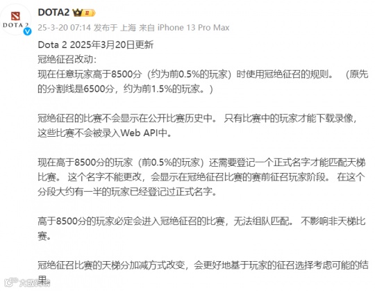 这项新规自3月20日起开始实行,大概率只针对游戏内的观战与下载录像,不影响直播高分段对局。基于此,DOTA2技术流主播们或将焕发第二春了,小伙伴们对于这个新规有什么看法呢?欢迎在下方留言分享。