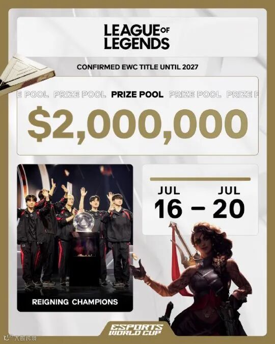 电竞世界杯奖池翻倍来到了200万美元,高于去年的奖池以及刚刚结束的全球先锋赛。同时对于参赛队伍,也有了书面上的要求——各大赛区第二赛段的冠亚军战队,将被邀请参赛。去年的电竞世界杯冠军T1,将接受直邀,总计会有12支队伍参赛。