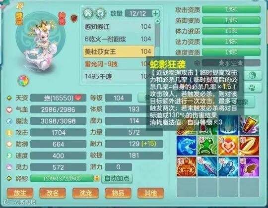 蛇影狂袭上线后还得到一次增强,不暴击的情况下也能增加30%伤害结果。反观蚩尤武魂荒古破击在同样的临时加攻下就只增加15%~50%伤害结果,还对目标和速度有要求,下限不如蛇影狂袭上限更远远不如蛇影狂袭。