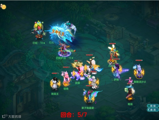 神兽青蛇的特殊技能蛇影狂袭可临时提升攻击力进行单体物理攻击,触发暴击后可再次出手最多重复两次(即最多打三下)。因为核心是必杀,因此会被幸运克制,会被减伤卦象、减伤阵位给减伤。