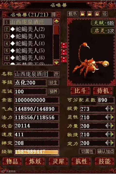 这是来自乱世久夏的神兽狮蝎,10亿亲密也是一个值得纪念的里程碑,这只召唤兽的羁绊值或已超越孟婆汤!