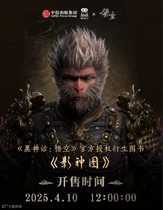 日前,中信出版集团旗下墨狸工作室官方正式宣布,《黑神话:悟空》官方授权衍生图书《影神图》将于4月10日12点正式发售。其中,装版售价159.2元,线装版礼盒售价342元。