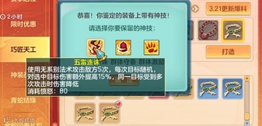 五雷连诛类似于一个秒5次的龙行八荒且对选中单位输出增加,总伤将近两个烽火的输出。
