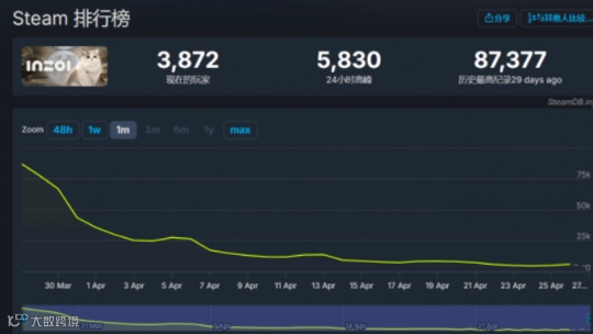韩国厂商推出的模拟生活游戏在今年3月上架Steam平台后,取得了相当不错的表现。抢先体验阶段首日,即创下超8万同时在线的历史峰值。随后在3月28日至29日期间,SteamDB统计的实时在线人数峰值突破6万,首月销量也达到了100万份。