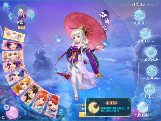 幻唐志新角色洛清晚拥有专属武器伞剑,身为魔族可拜入灵月山、魔王山、万兽岭、盘丝岭、幽冥地府、无名谷六大门派。