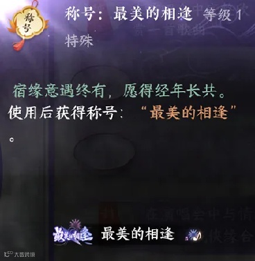 其次,就是对应演唱会主题的新称号“最美的相逢”,这个称号颇具纪念意义,值得所有江湖同门收藏;还有通过与自己的情缘、挚缘、师父、徒弟、结义来共同参与演唱会并合照,就能直接获取的限定社交称号!