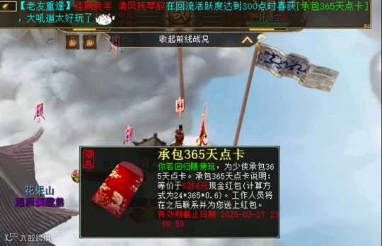 近日回流活动来袭,来自佳期良年服务器的老铁,在活动中达到300点活跃度,竟喜获356天点卡!