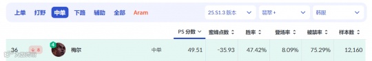 梅尔在实际对局中的胜率曲线非常奇怪,随着时间的推移一路走低,在29分钟后胜率才会有所提升。根据玩家的实际体验反馈,梅尔通常很难充当法核英雄的定位。W技能的特殊机制,也只有后手Counter才能打出较好的效果。