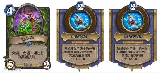 相较而言,黑暗之赐的效果就比较弱了,就是让新发现的黑暗之赐随从随机从10个强大效果中,随机获得一个特效。虽然这些特效有诸如冲锋、获得圣盾和风怒这样强大的BUFF,也不乏获得+4+5置于你的牌库顶,法力值减少2点但降低2点攻击力。由于太过随机,一旦后续没有可以配合的卡牌,黑暗阵营的职业估计是要坐大牢了。