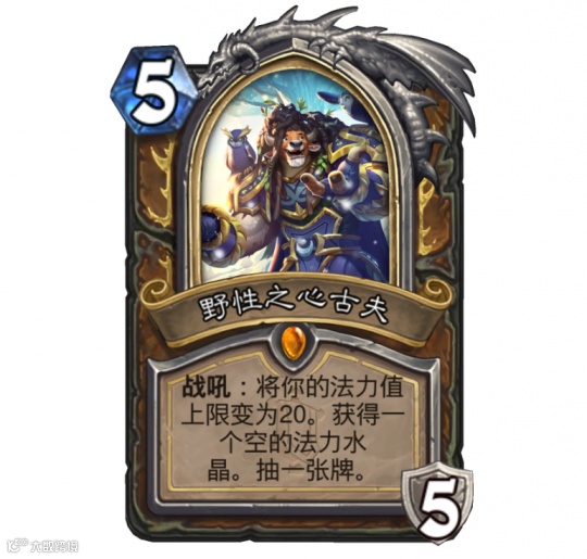 如果要从炉石历代版本卡牌中,挑选一张最讨人厌的卡牌,那么野性之心古夫必定是最有力的竞争者。这张卡将玩家法力值上限变成20费的效果,直接让德鲁伊所有卡组的强度超标,成为天梯一霸。正因为古夫强度太超标,直至退环境前,设计师都在对这卡进行削弱。但让人没想到的是,在炉石最新版本“漫游翡翠梦境”,古夫居然复活了?