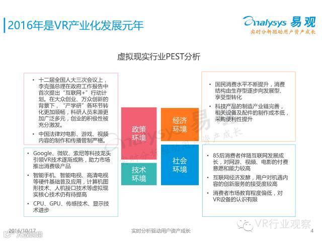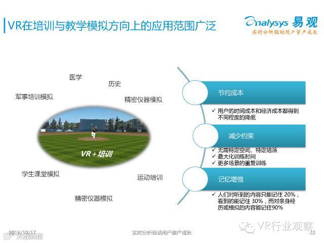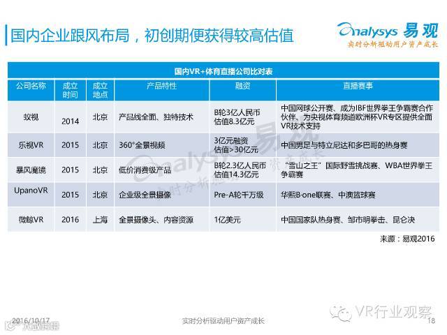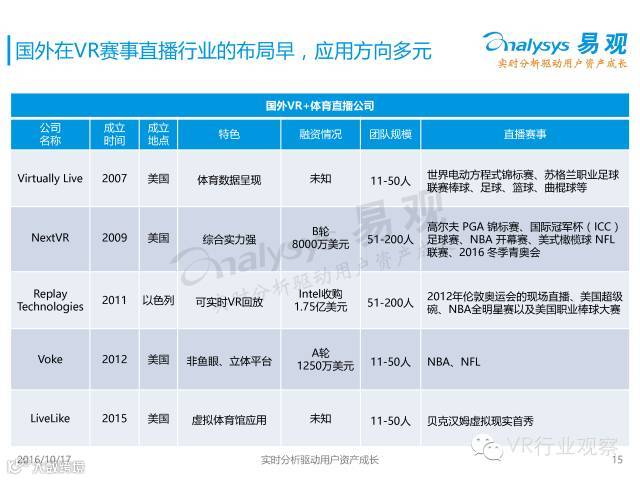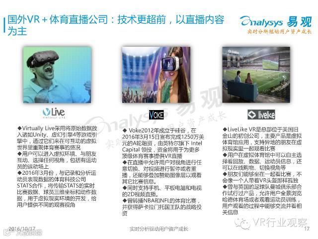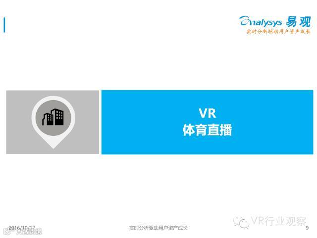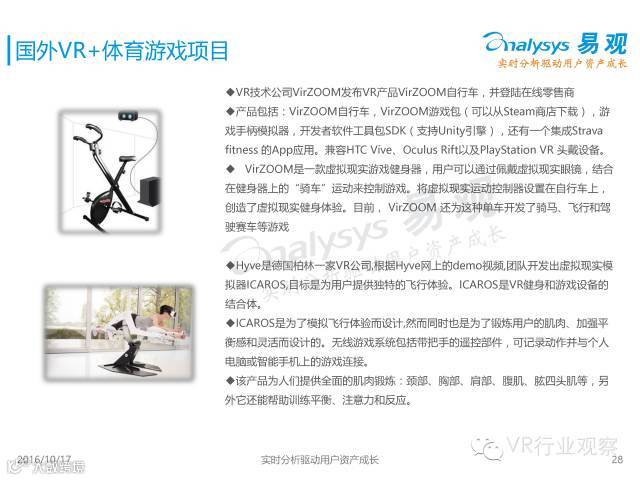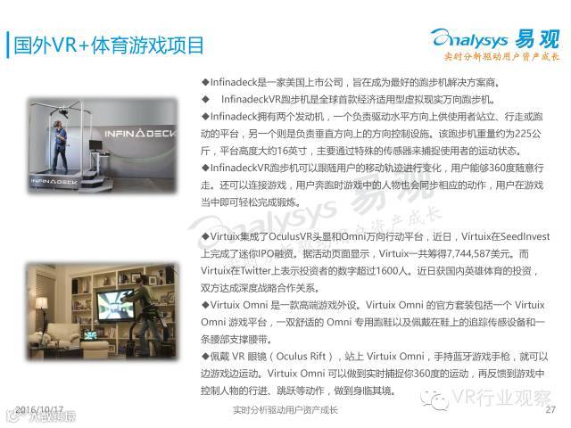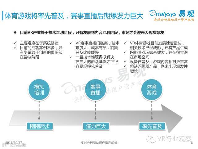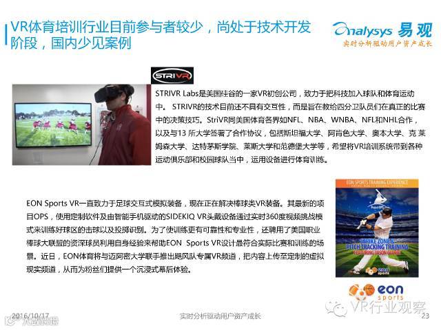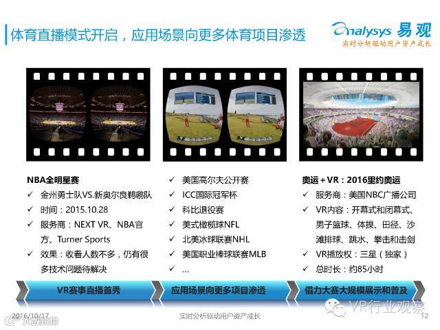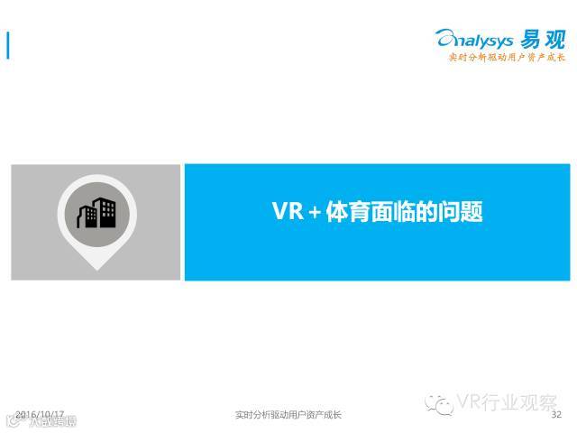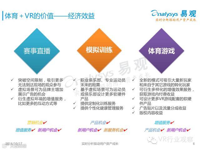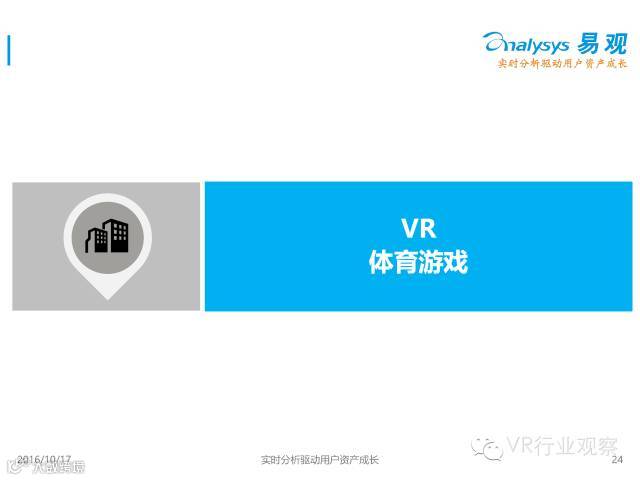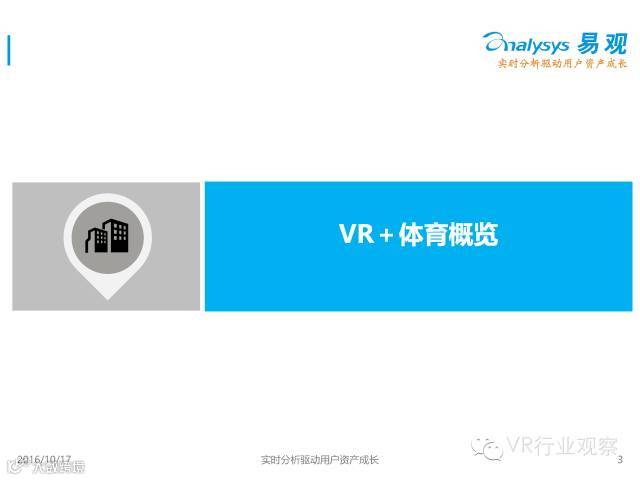之前两周,观察君为大家带来了健康和旅游这两大垂直行业与VR结合的深度报告,获得了宝宝们的一致好评,并且向观察君提出,希望看到更多与垂直行业相关的分析报告。今天,观察君便为大家带来了由易观智库发布的《中国体育+VR产业专题研究报告2016》,希望体育+VR的新玩法能够给宝宝们带来启发和帮助。以下为报告全文——