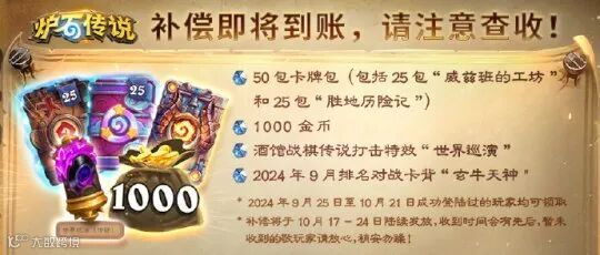 为了补偿玩家,官方最终送出了50包卡牌包+1000金币的史诗级礼包。此消息一出,原本还有怨言的玩家们瞬间平复了心情。而在今日起到10月24日,这份补偿将陆续给到大伙的账户中。现阶段,已经有不少人将50包拿到手了。