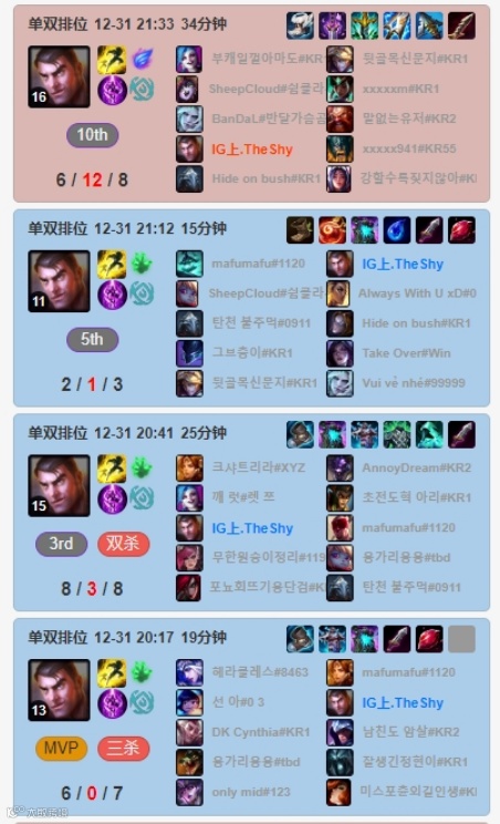 职业选手对新打法套路的直觉是敏锐的,自圣枪哥在德玛西亚杯上首次将肉杰斯搬上赛场之后,就引来了其他人的纷纷效仿。IG上单The Shy近期的排位记录中,因此出现了大量肉杰斯的对局数据,并且胜率极为惊人达到了恐怖的11胜1负。(唯一输的那局出的还是穿甲)