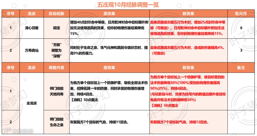五庄观的“清心羽客”流派将固定增加的封印命中等级,调整为与自身武器、衣服联动,并提高了10点上限,最大可提高50点封印命中等级。“万寿真仙”流派则是提升了伤害数值,令其输出能力有所提升。