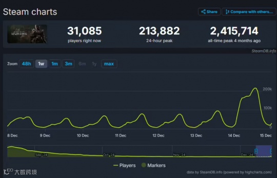 12月14日,《黑神话:悟空》迎来了发布以来的最大规模的更新。得益于新增的Boss挑战模式,可以让玩家直面曾经战胜过的Boss,而无需体验完整的游戏流程。许多原本通关多周目的玩家,也迎来了回流。同时在线玩家人数,又提升到了20万。