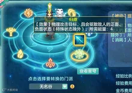 (1)归原、魂飞斩和风护流星爆的机制修改为先驱散后造成伤害,很不错的一个增强,举个例子,如果目标残血处于物理免疫状态,那么原版的无名是无法用归原将其击杀的,因为先结算了伤害后才结算消buff,而新版就可以一个归原带走。