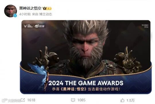 国产3A大作《黑神话:悟空》四获提名,最终得到了最佳动作游戏和玩家之声奖项。可是由于没能得到年度最佳奖项,许多中国玩家还是感到非常遗憾的。