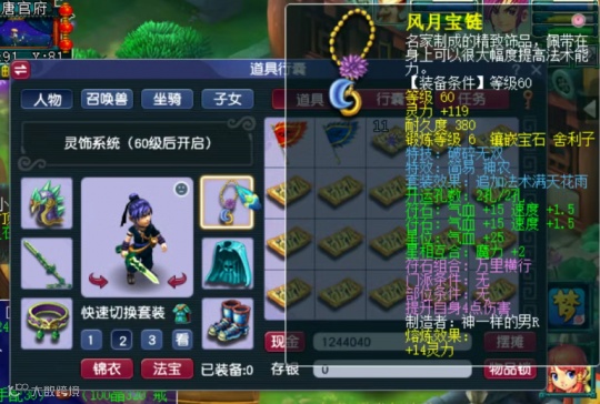 项链位置为60级破碎、简易、神农、满天花雨,镶嵌6锻舍利子后总灵高达133点。