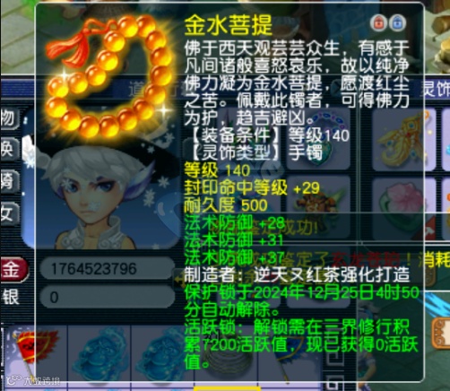 昨天,有玩家鉴定一车140后排灵饰时吉星高照,斩获了稀有成就“一样的加成”。这是主属性29封印、下排法防共96的手镯,属性爆了十几点挺不错的。近几联武神坛来,排山倒海般的法谛听越来越多,如何对抗它们成为难题,携带这类灵饰堪称最佳“答案”,非常适用于女儿、五庄、地府等门派!