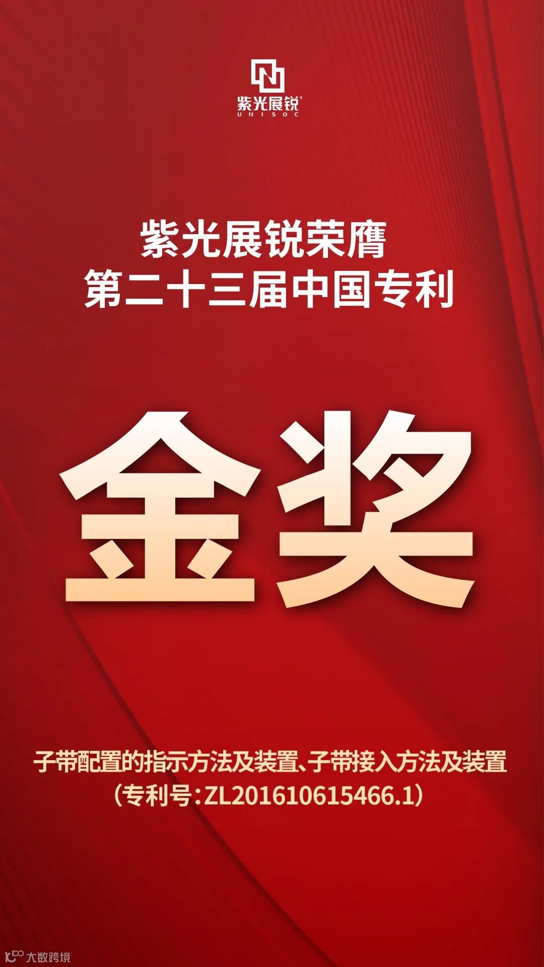 奖评选结果揭晓,紫光展锐专利“子带配置的指示方法及装置、子带接入方法及装置”(专利号:ZL201610615466.1)荣获“第二十三届中国专利金奖”。