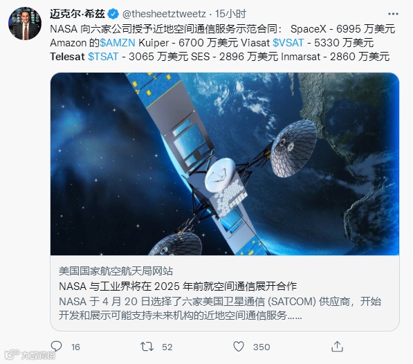 【关注】总计 2.785 亿美元,6 家公司“分抢” NASA 太空通信合同,SpaceX 最多