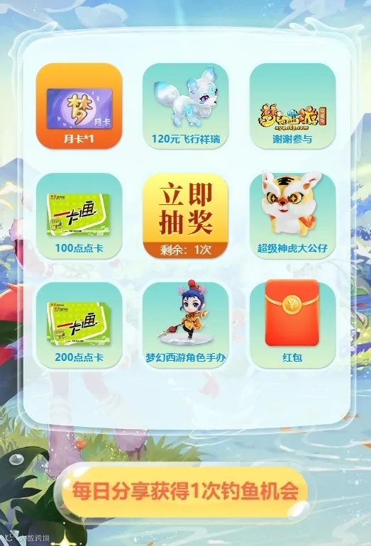 每日分享还能额外获得1次钓鱼机会噢!赶紧扫描下方二维码,试试手气吧!