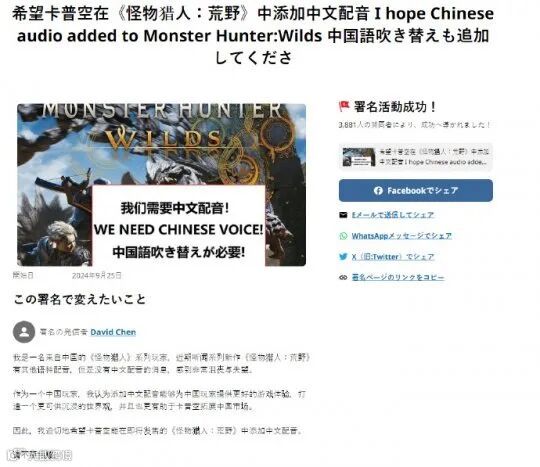 对此,甚至有玩家在网上发起了请愿,希望卡普空可以注意到中国玩家的需求。
