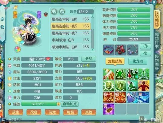 高级连击,是耐攻连击宠的根本,多次攻击也可变相提升盾转的触发几率,高级强力+高级防御,两本属性书撑起面板,耐攻宠对宠物属性的要求比较高,因此建议两本面板书都用高级兽决。