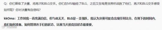 作为韩国队教练,kkoma教练对BLG相当重视,认为对方是一支强队,决赛可能出现任何比分。