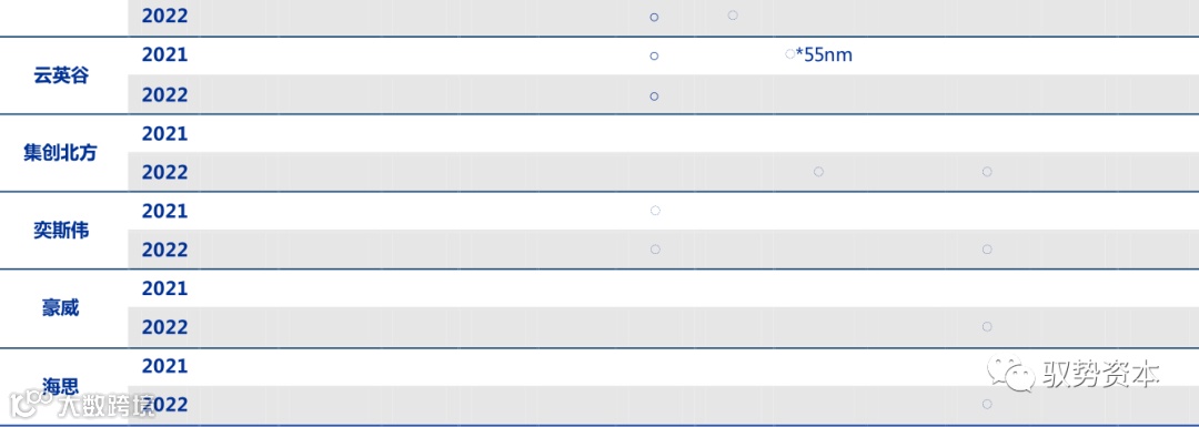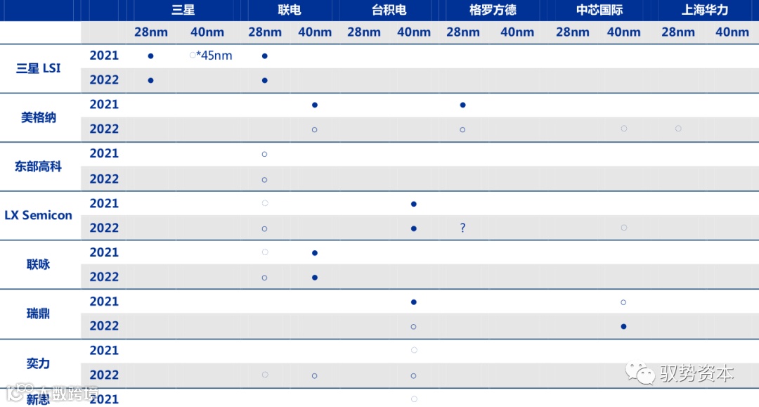 格芯:主要向美格纳提供28nm产能;LXSemicon和新思也将在2022年开始建立合作关系;集创北方计划导入其40nm制程,预计将在2022年下半年进行量产。