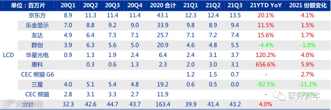 随着中国大陆面板厂的份额提升,上游供应链的转移带动国内显示驱动芯片行业快速发展。